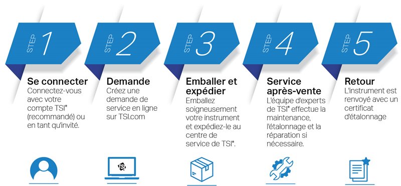 TSI est là pour vous soutenir, vous et votre entreprise : nous nous engageons à vous fournir les normes les plus élevées en matière de service, de réparation et d'étalonnage des produits. Une équipe d'experts professionnels prend en charge votre instrument, le répare et vous le renvoie dans les plus brefs délais.